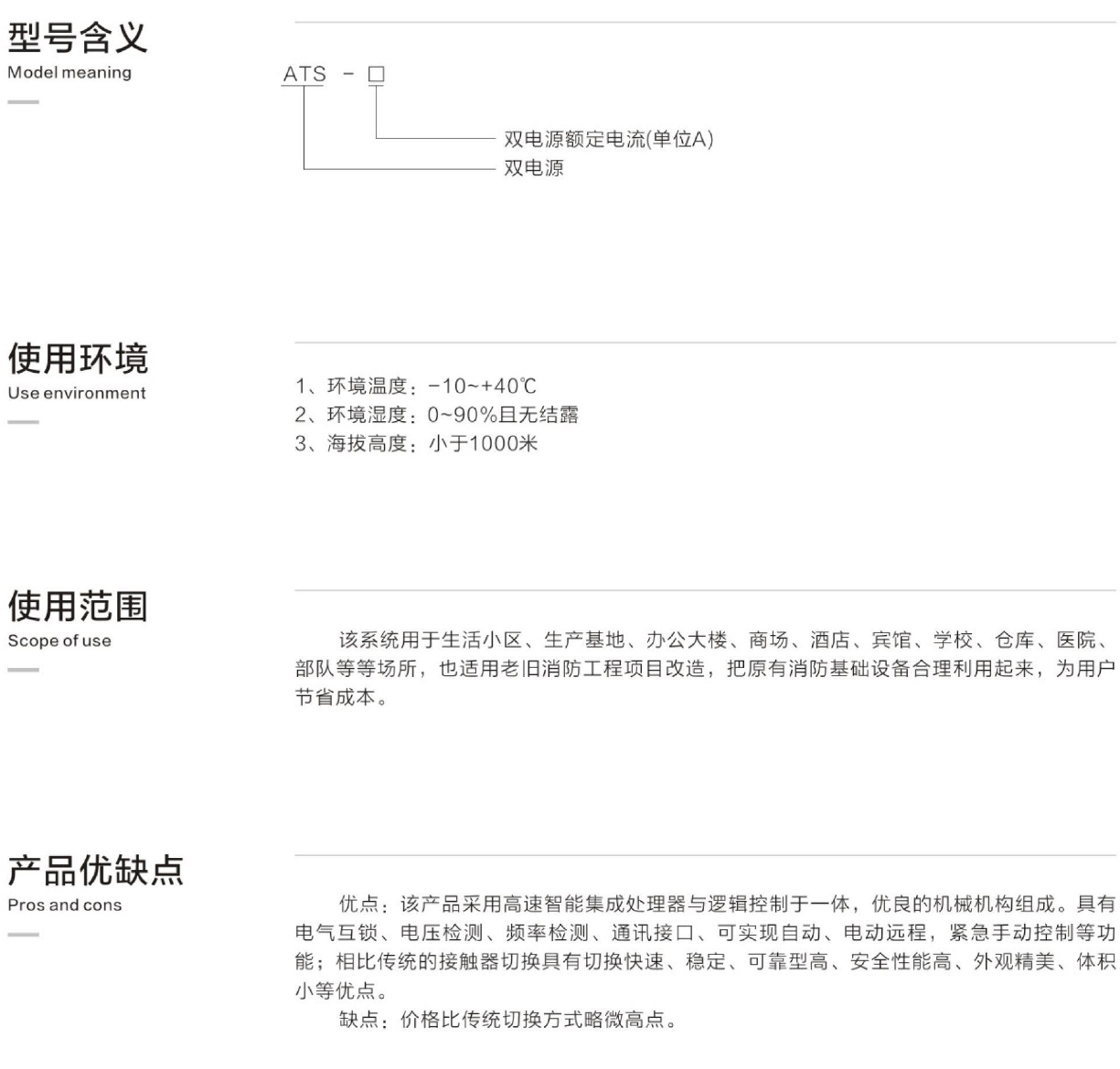 ATS系列消防巡检双电源控制柜,是消防巡检柜、消火栓柜、喷淋柜、消防水泵,消防控制中心、消防排风机等消防设备的用电提供电源保障;消防巡检双电源控制柜配有一主一备2路电源,保障在发生火灾时主路电源(市电)因火灾原因而中断,立即切换到备用应急电源,为所有消防设备提供可靠用电,保障消防设备正常运行,保障人民的生命和财产安全。本产品具有短路、过流保护,失电自动切换等功能。